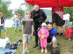 Martin dodal krásný stan v klubových barvách. Pak ještě vytasil logo, které vyrobil, a které mi udělalo velikou radost. Naaranžovali jsme skromnou výstavku výstroje, která přitáhla pozornost spíše dospělých návštěvníků přehrady. Podali jsme spoustu informací ohledně výstroje, přičemž rodičové se zásadně ptali na potápěčské brýle pro své děti. Všichni svorně se pochlubili i tím, že jejich děti zatím neumí plavat. Zřejmě nová móda.